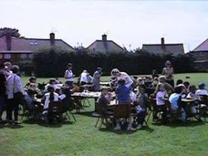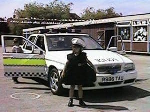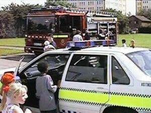 The Picnic began. As the children began to eat their sandwiches, sausage rolls, crisps, biscuits and chocolates a strange sight grabbed their attention. Entering the school gates and making its way onto the field was a fire engine from the Nottinghamshire Fire and Rescue Service. It arrived with lights flashing to a roar of approval from all the children. The crew began to wander around the field chatting to the children while the children quickly ate their food – all of them wanting to get a closer look at the engine. Another sight turned their heads again – as this time a traffic car from the Nottinghamshire Police Force entered school and parked on the playground.