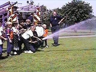 The children climbed into the fire engine and then watched as the hose was brought out and a quick demonstration of how to tackle a fire was given.