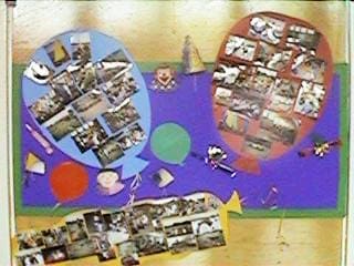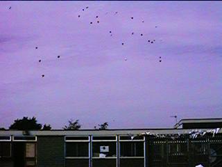 After a slight panic about how not to lose the balloons before we were ready had been solved we announced that it was time. The balloons were cut free and allowed to travel up, up and away. The children raced across the playground following the direction they were travelling in.