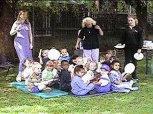 Eventually the children returned to their tables and the special 30th anniversary cake was wheeled outside.