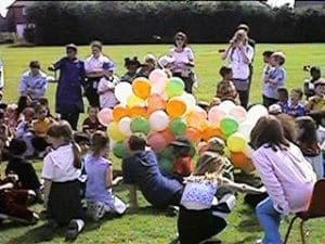 Finally, to round of the day, we prepared to launch the balloons in our great balloon race. After the children had paid for a balloon we attached labels to them asking anyone who found one to return it to school – the furthest reply winning the owner a prize for the furthest travelling balloon.